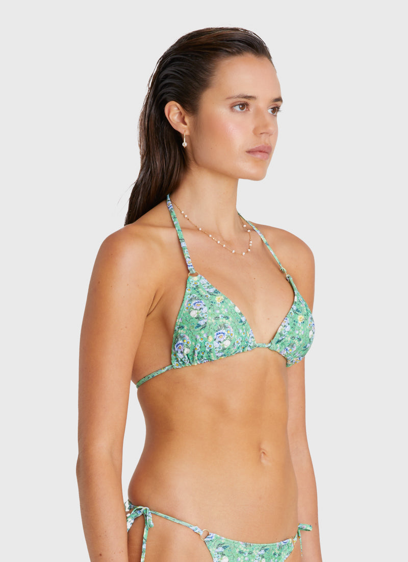 The Prairie Bella Triangle by Heaven Australia is a classic triangle bikini top that offers both comfort and style. It features removable cups and adjustable ties for a customizable fit. With charm detailing, this versatile piece is perfect for your next beach day or pool party.