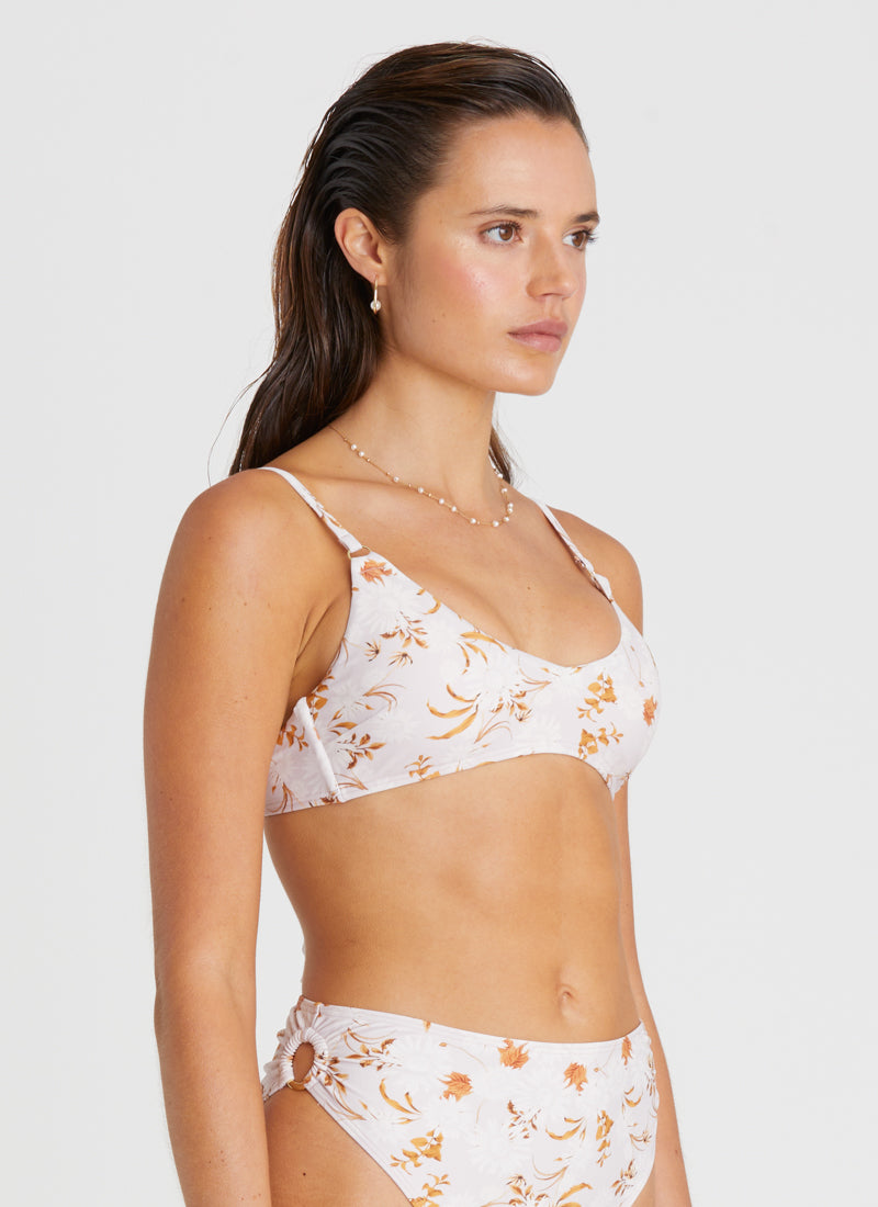 The Mayflower Madeline Top by Heaven Australia is a stylish and supportive bralette that's perfect for lounging poolside or hitting the beach. With its removable cups, adjustable tie back and adjustable straps, this top offers a customizable fit that can be tailored to suit you.