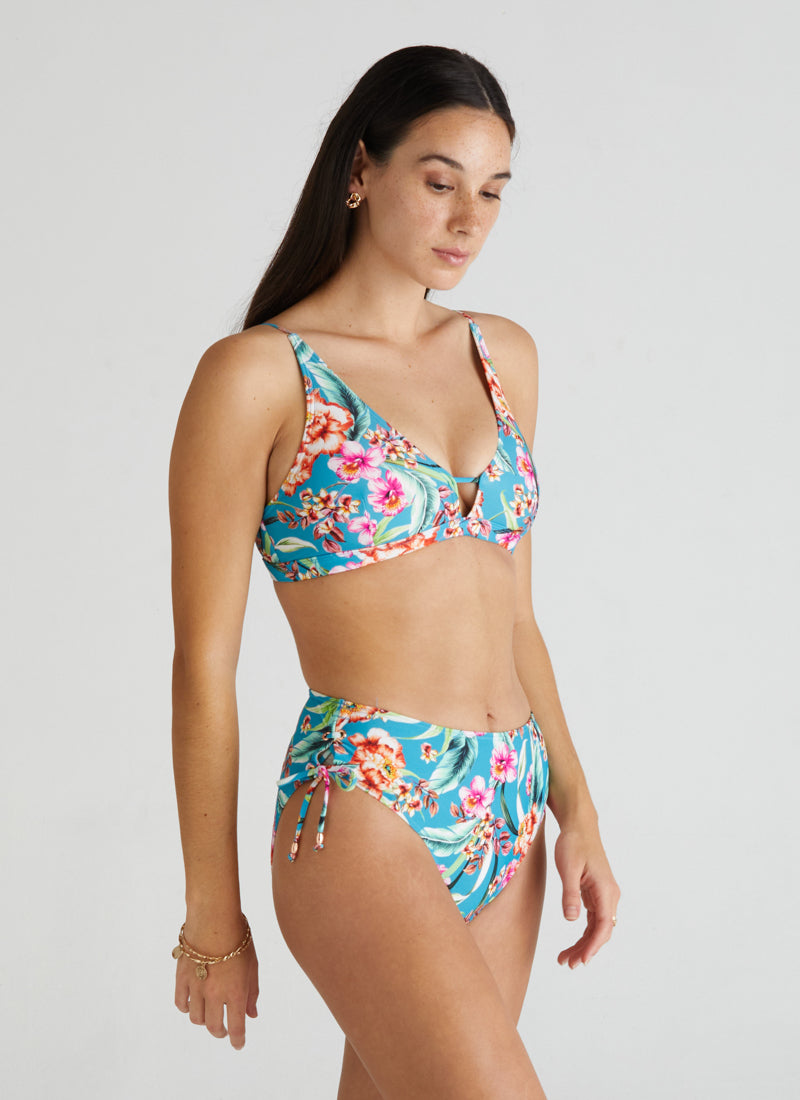 The Cara Bralette is the ultimate bikini top featuring a feminine silhouette, adjustable shoulder straps and a rose-gold details.