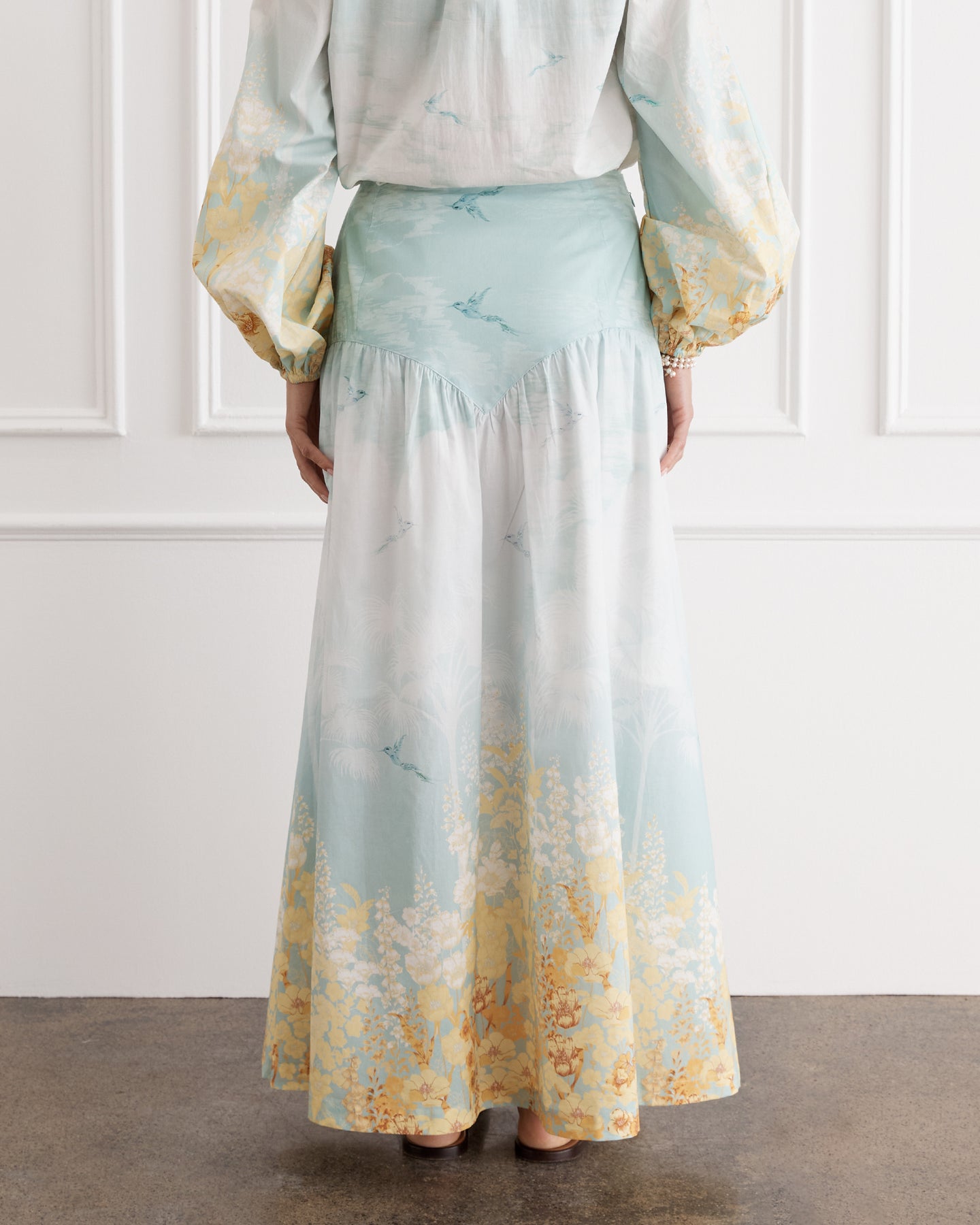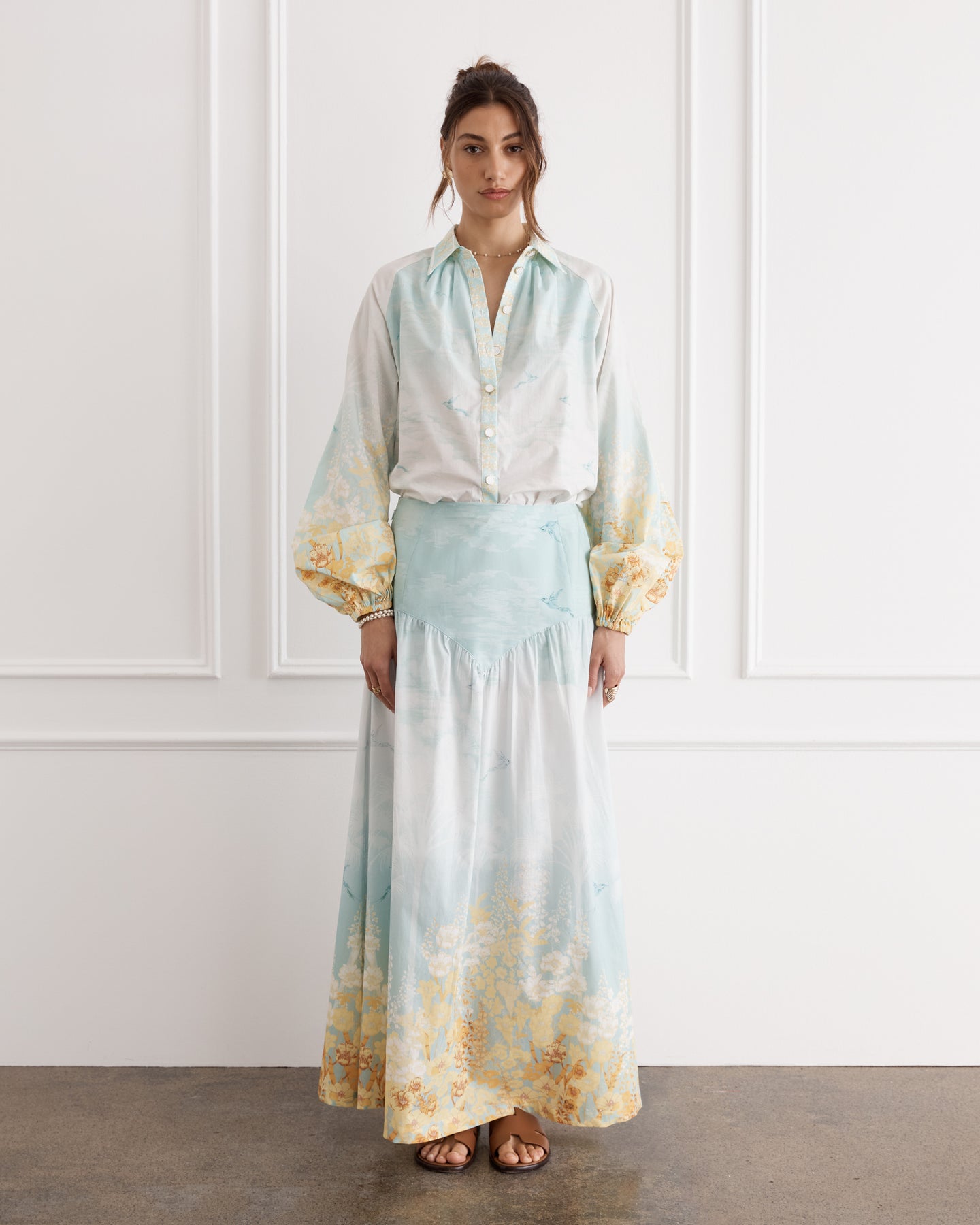 Crafted from 100% Cotton Poplin, the Aida Maxi Skirt is a softly structured staple designed to be worn with ease. The high-waisted silhouette features a fitted hip panel that flows into a graceful, floor-grazing hem, offering both shape and fluidity. Perfect for golden hours spent under the Tuscan Sun.