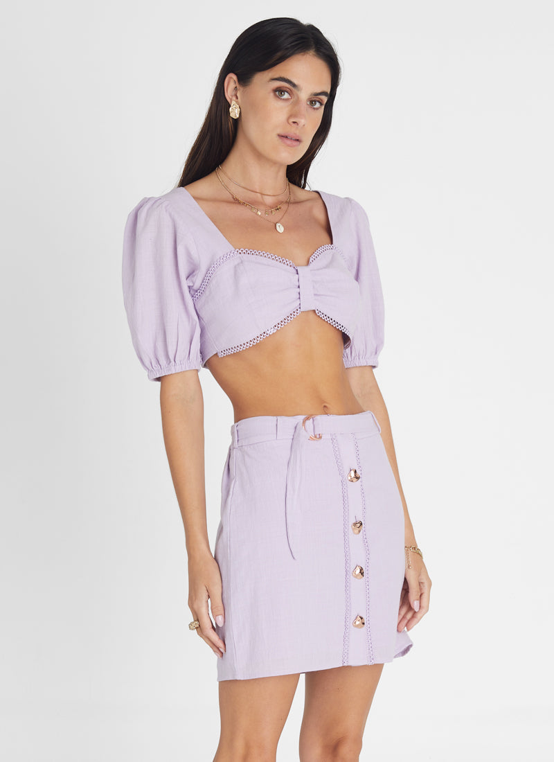 Our Button Up Mini Skirt is the ultimate edition to your fashion wardrobe. Featuring a high waist, design, pair it with our Tie Crop Top, gold accessories and sandals for a fashionable look.