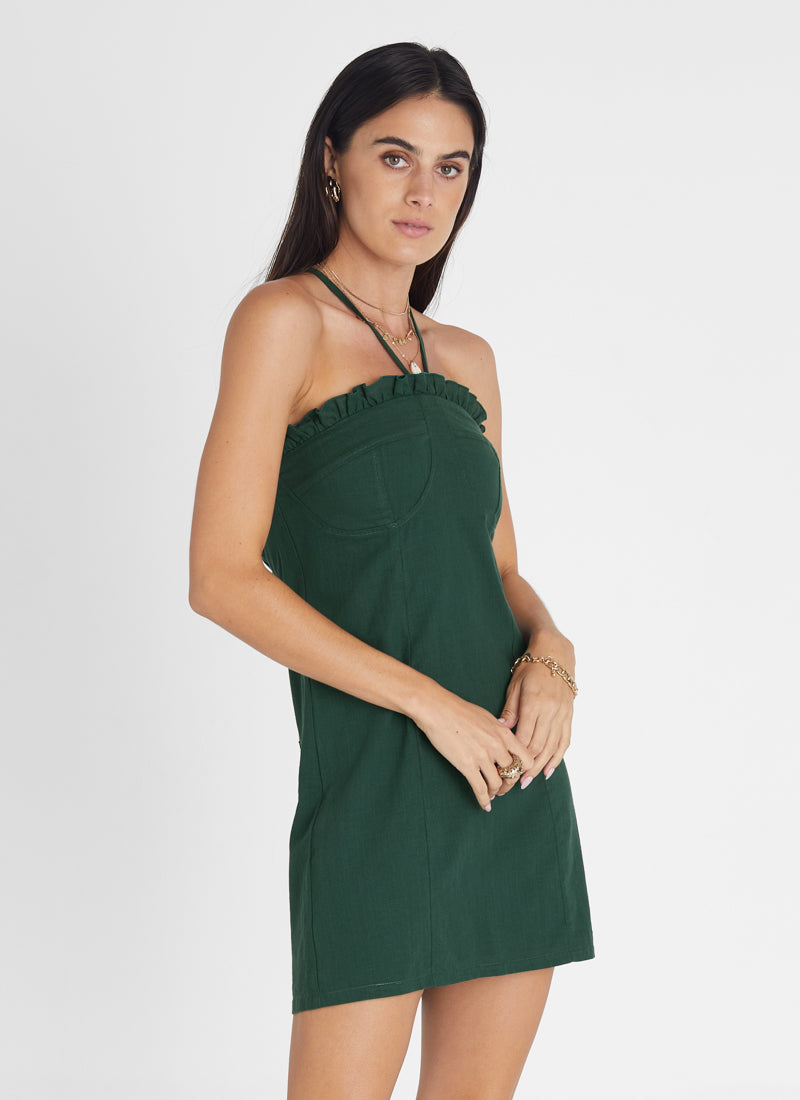 The Cross Back Mini Dress features a halter neck design, pleated detail and criss-cross back straps. Pair it with strappy heels or white sneakers for an effortless look.