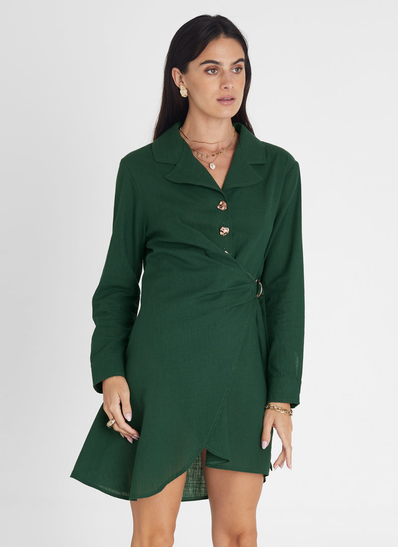 Our Long Sleeve Dress is a must have staple in every wardrobe. Featuring a collared neckline, faux wrap front detail and full-length sleeves, it is a versatile piece perfect for all seasons and occasions.