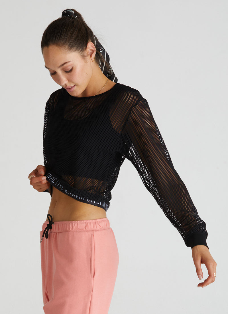 The relaxed fit mesh sweater is perfect to be worn over both your activewear and swimwear. Designed from stretch active-netting fabric with an in-built tank top underneath.