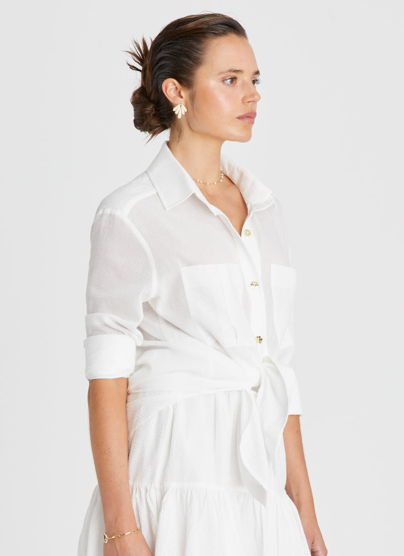 Dress this shirt up by pairing it with slim jeans, heels and fine jewelry open over one of our chic crop tops or bikinis.