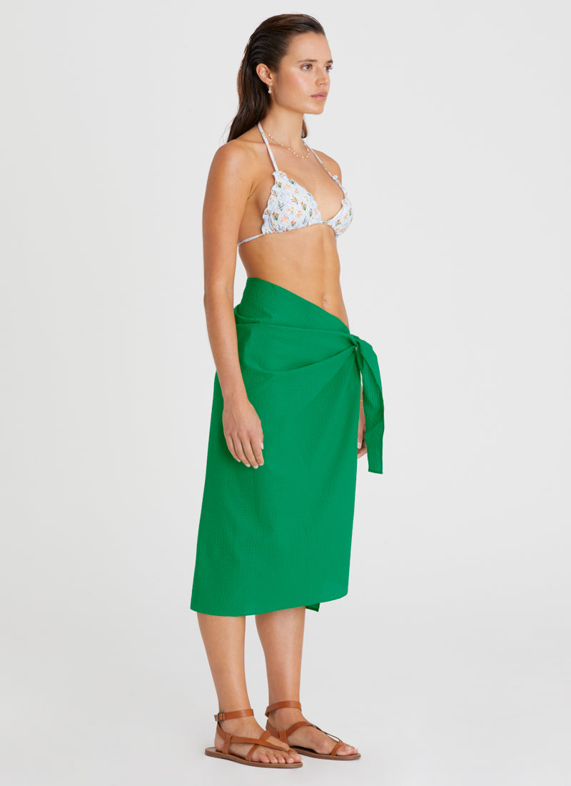 A multi-wear styling sarong is the perfect addition to any Summer wardrobe. With its relaxed fit and front tie detail the Cruise Pareo by Heaven Australia pairs incredibly well over all swimsuits and separates.