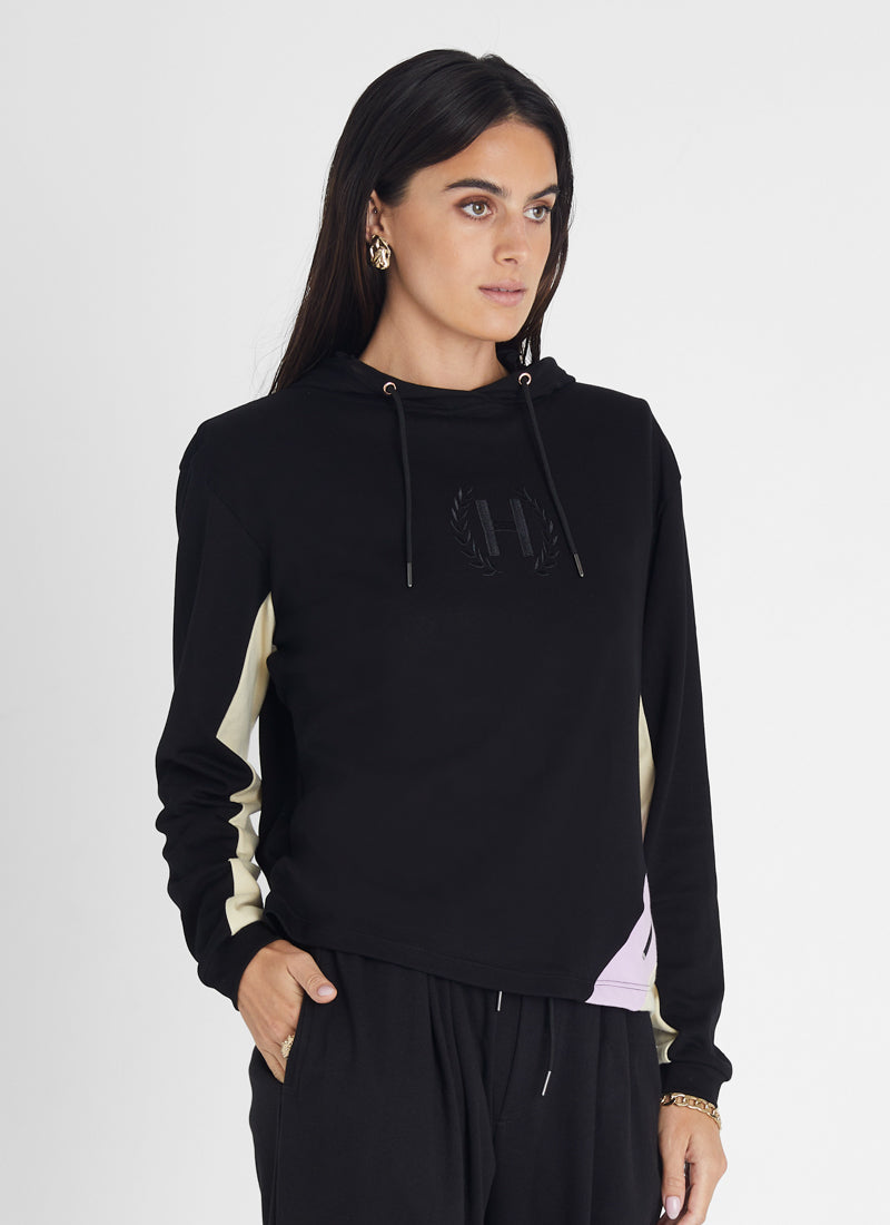 The Hoodie is the perfect to be worn over both your activewear or even around the house. Designed from luxurious jersey fabric, contrast panels, and front zip detail.