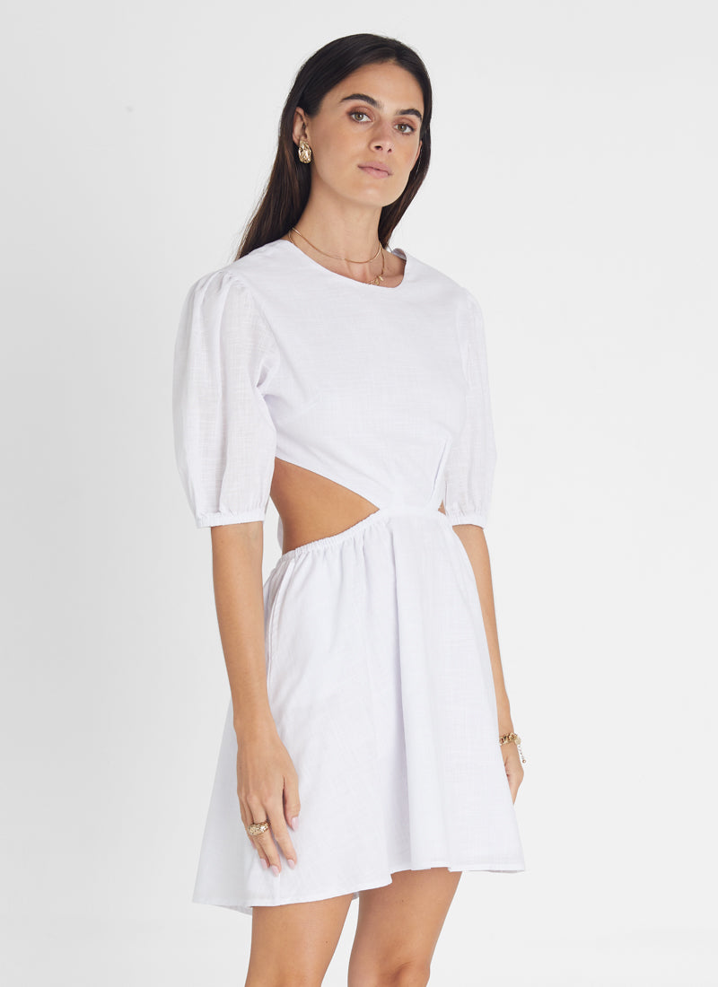 Designed with style and comfort in mind, the Short Sleeve Cut Out Dress is a must have fashion staple. Featuring elasticated short sleeves, elasticated waistband and tie back.